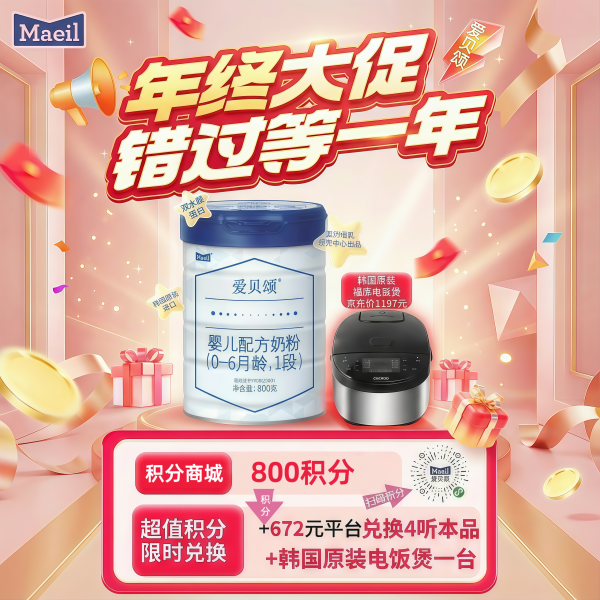【1段】800积分+672元得韩国福库电饭煲加800g爱贝颂4罐1段