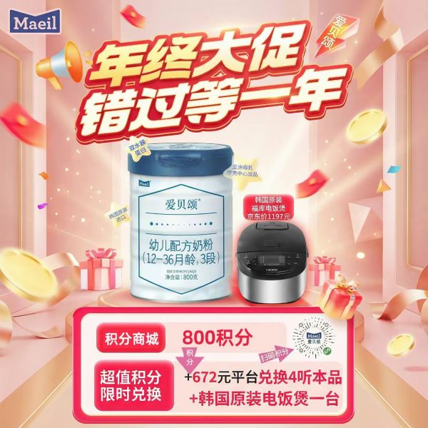 【3段】800积分+672元得韩国福库电饭煲加800g爱贝颂4罐3段